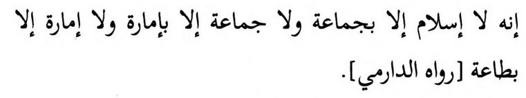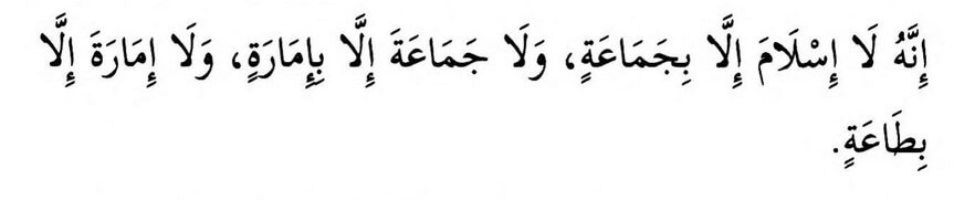 "Sesungguhnya tidak ada Islam kecuali dengan berjamaah, dan tidak ada jamaah kecuali dengan beramir, dan tidak beramir kecuali dengan tha'at."