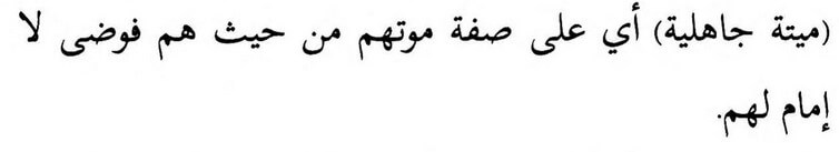 “Mati dalam keadaan jahiliyah artinya mati seperti orang jahiliyah, di mana mereka suka perang, kacau, tidak punya pemimpin tunggal.”17